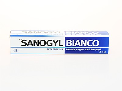 Sanogyl Bianco dentifricio è indicato per l'igiene orale anche dei soggetti a rischio di disturbi gengivali. Contiene un efficace complesso antibatterico che: